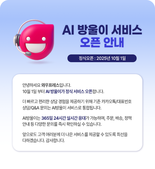 | 1,334 | AI방울이 서비스 오픈 안내 | 2025.09.24 | |||||||||||||