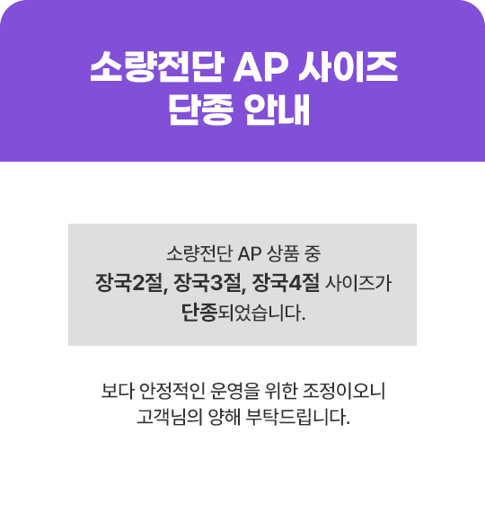 | 292 | 소량전단 AP사이즈 단종 안내 | 2026.03.16 | |||||||||||||||